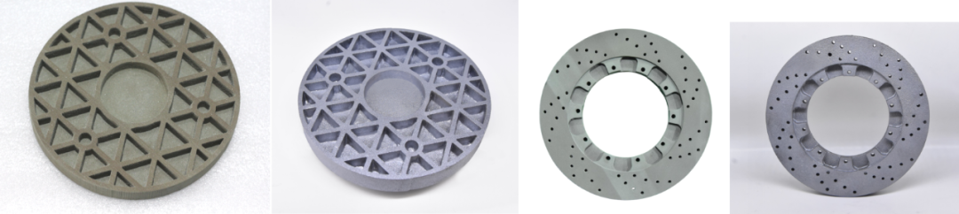 基于水基环保型粘结剂和溶剂基高效粘结剂两大种类形成的20余种工艺配方,开发相应的成型工艺和脱脂烧结等后处理工艺,实现了适用于不锈钢、工模具钢、钛合金、铜合金、高温合金、硬质合金等金属材料,碳化硅(SiC)等陶瓷材料以及PMX晶态蜡、无机盐、食品、药品、高分子复合材料等非金属材料的成型工艺。同时,通过对高致密度脱脂烧结成型工艺的系统研究,实现了对脱脂烧结过程中金属与陶瓷产品的控形与控性,对脱脂烧结后的成品质量实现精准把控,产品性能优于MIM国际材料标准的力学性能。