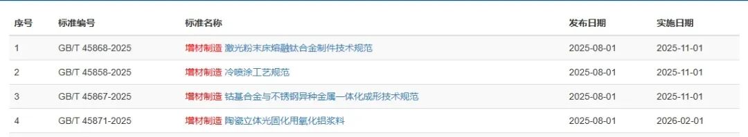 近日,我国发布4项增材制造领域国家标准,其中《增材制造 激光粉末床熔融钛合金制件技术规范》(GB/T 45868-2025)是我国首项针对激光粉末床熔融3D打印技术的产品类国家标准。