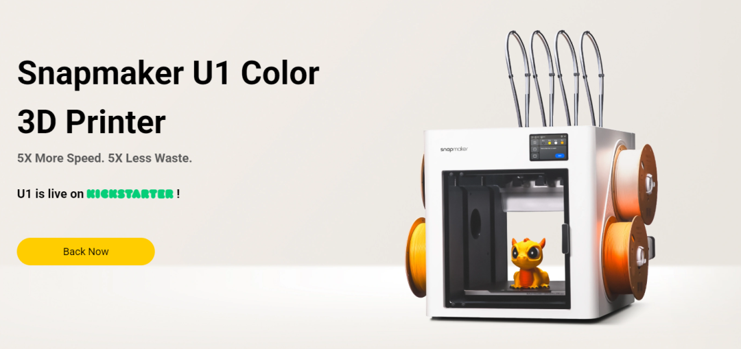 Snapmaker推出最新彩色3D打印机Snapmaker U1,在kickstarter已筹集6249481美元。