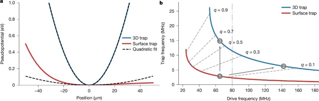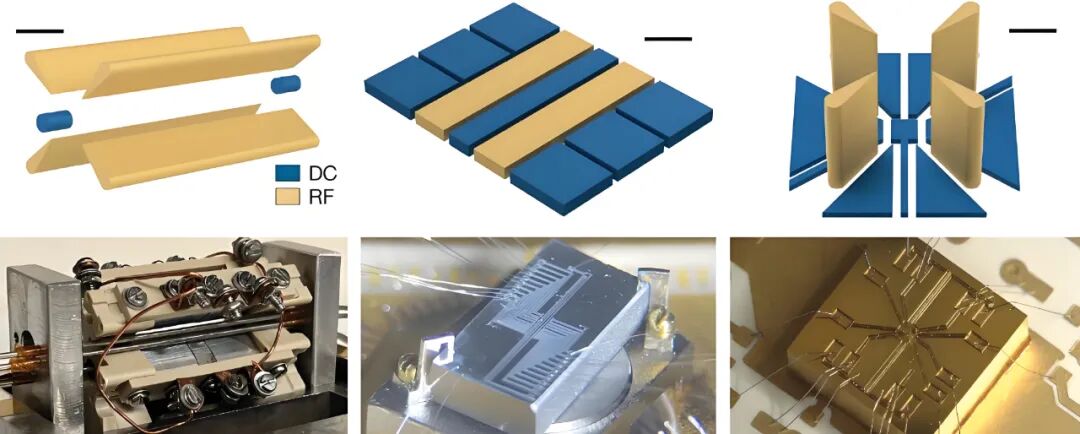 然而,性能和可扩展性之间存在着权衡。在工业界,研究人员通常使用带有表面电极的“平面”离子阱,这种离子阱可以很好地扩展,成为大规模信息处理系统的构建块,但传统的3D设计性能更佳。