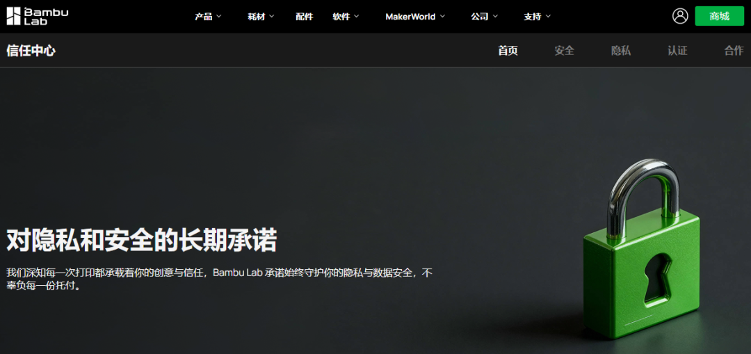 10月9日消息,拓竹科技推出了“信任中心”,这是一个安全和数据保护信息的中心平台。重点是一份长达38页的白皮书,其中描述了拓竹产品在六个领域的安全架构:设备安全、软件安全、云保护、数据保护合规性、开源计划和漏洞奖励计划。