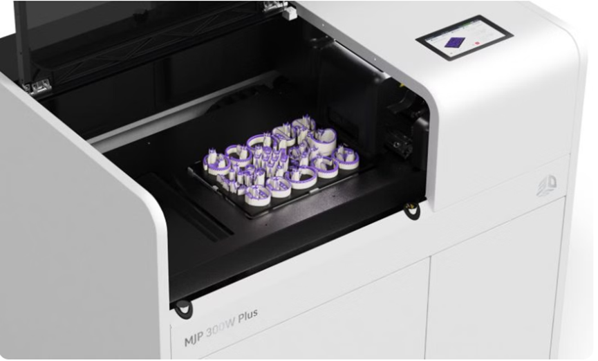 3D Systems近日推出MJP 300W Plus设备,为其珠宝制造端到端解决方案组合再添新成员。MJP 300W Plus能打印用于贵金属珠宝铸造的极致复杂蜡模,兼具卓越打印精度与可溶解/熔融支撑技术,可实现精准的表面质量——有效减少后续精加工工序及贵金属铸件的抛光成本。