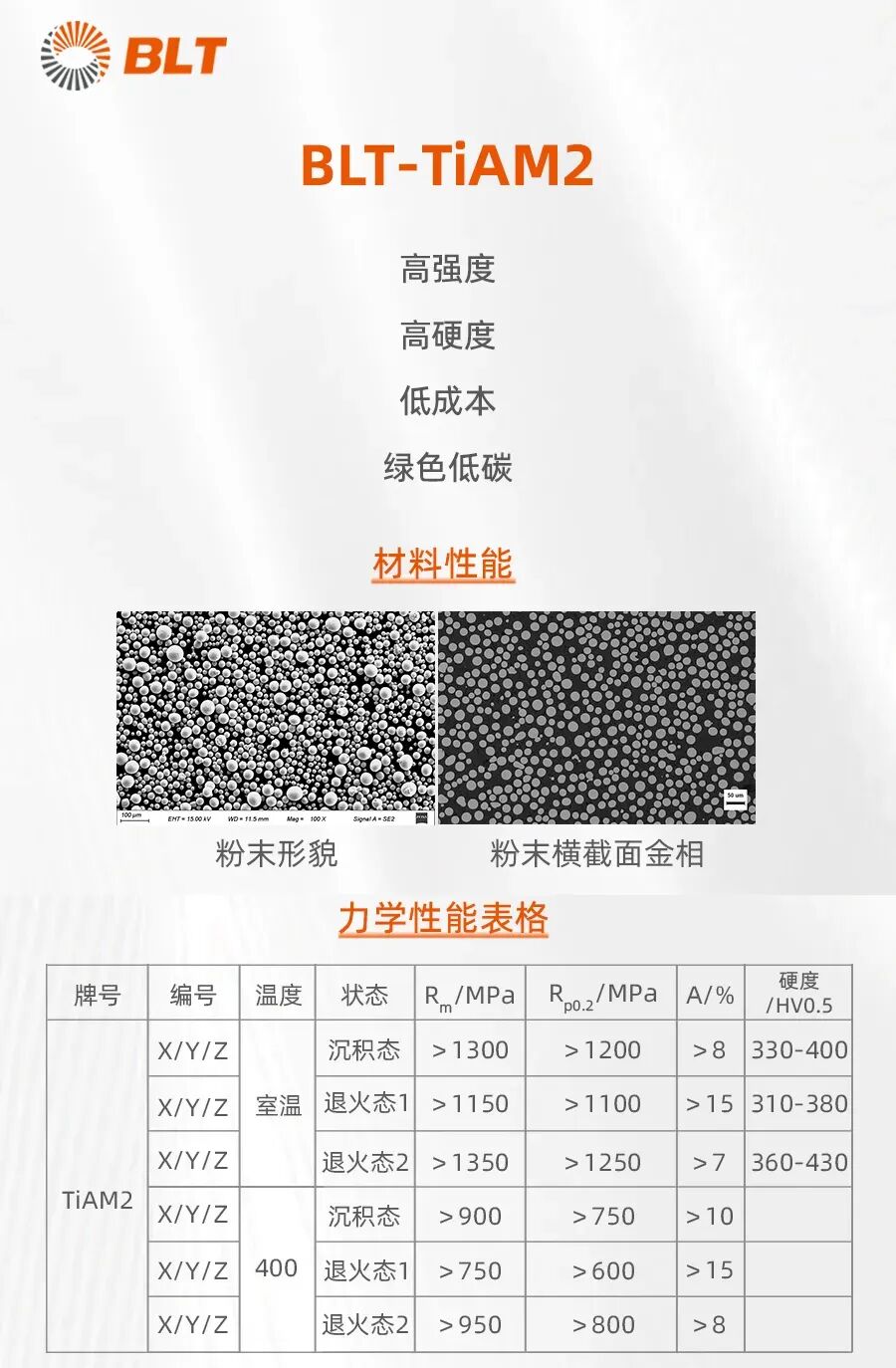 3D打印技术参考注意到,铂力特于日前推出了一款名为BLT-TiAM2的新型钛合金材料,具有多种显著的技术特点。