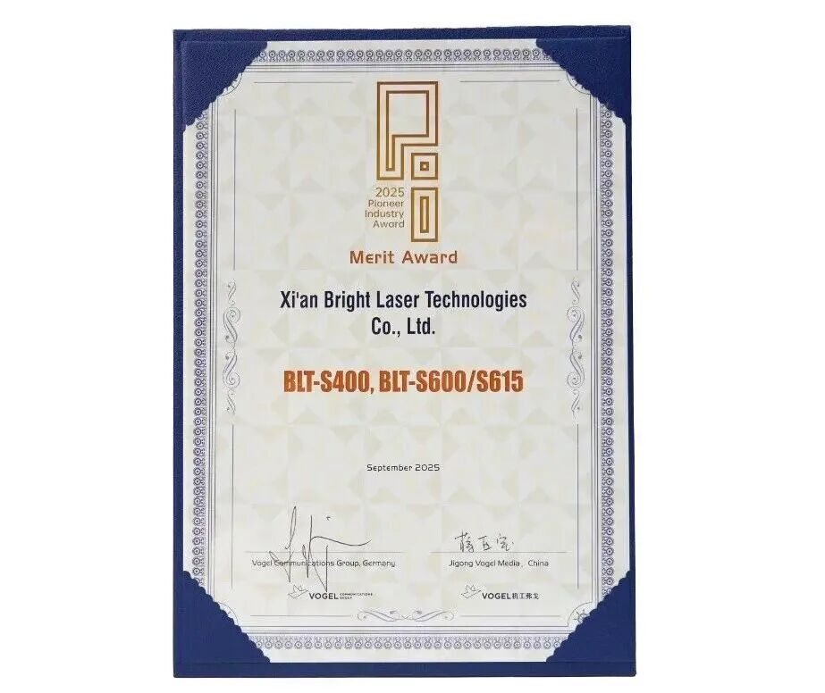 2025年9月22日,在德国汉诺威EMO机床展首日,由北京机工弗戈和德国弗戈传播集团共同举办的“弗戈出海先锋奖颁奖典礼”盛大举行。铂力特BLT-S400和BLT-S600/S615设备凭借突出的技术创新能力和显著的经济社会效益,荣获弗戈出海先锋奖。