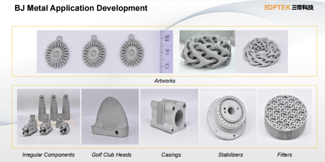 三帝科技已系统掌握BJ粘结剂喷射金属/陶瓷成形的设备、材料及工艺全套关键技术。其3DPTEK-J160R/J400P/J800P系列打印设备,集成精准供粉、高致密铺粉与高精度喷墨控制系统,有效应对小粒径粉末铺放难题,支持400–1200dpi高分辨率打印,最高成型精度达±0.1mm,最高成型效率为3600cc/h。