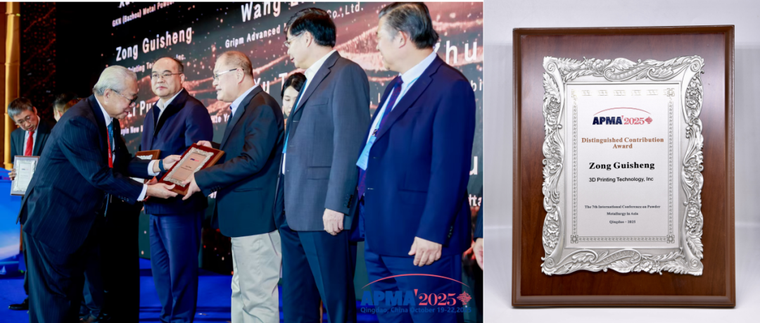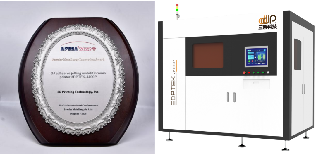 2025年10月19日至22日,第七届亚洲粉末冶金国际会议暨展览(APMA2025)在山东青岛成功举办。本次会议由粉末冶金产业技术创新战略联盟(CPMA)与中国金属学会(CSM)联合主办,汇聚了国内外粉末冶金领域的顶尖专家与企业代表。三帝科技自主研发的BJ粘结剂喷射金属/陶瓷打印机3DPTEK-J400P荣获“粉末冶金创新奖”,粉末冶金产业技术创新战略联盟3D打印专委会主任、三帝科技董事长宗贵升博士荣膺“粉末冶金突出贡献奖”。