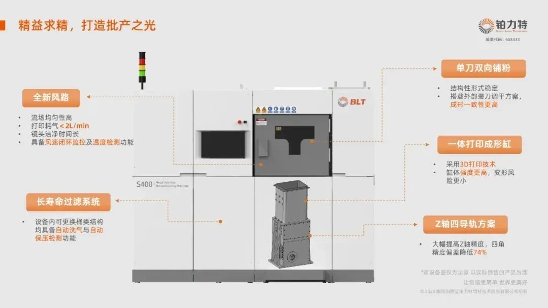 根据铂力特10月21日发布的消息,该公司在9月份举办的德国汉诺威EMO机床展上,其BLT-S400和BLT-S600/S615设备凭借突出的技术创新能力和显著的经济社会效益,荣获弗戈出海先锋奖,两型设备均实现了先进性与实用性的深度融合。
