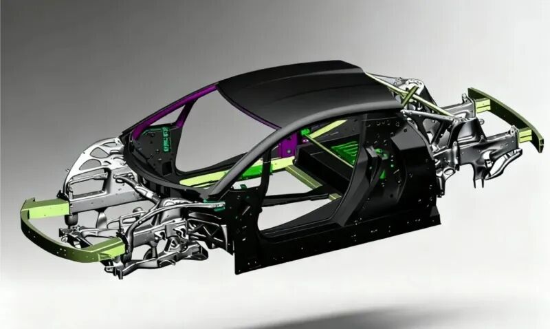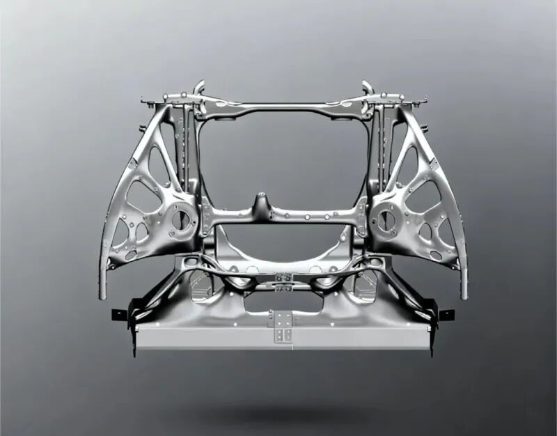 面对整车极限速度以及极致操控性的挑战,车身选择使用最先进的、最前沿的技术和材料去进行设计。3D打印技术赋予车身高度的结构自由度与集成化,可实现车身超高的赛道级刚度、极致的碰撞安全以及行业领先的轻量化系数。