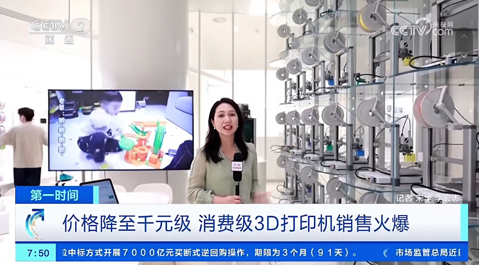 11月5日,总台央视记者走访了拓竹深圳3D打印机旗舰店。报道指出,消费级3D打印机近期销售非常火爆,成为增长最快的数码品类之一。目前,消费级3D打印机的价格较三年前下降了60%。