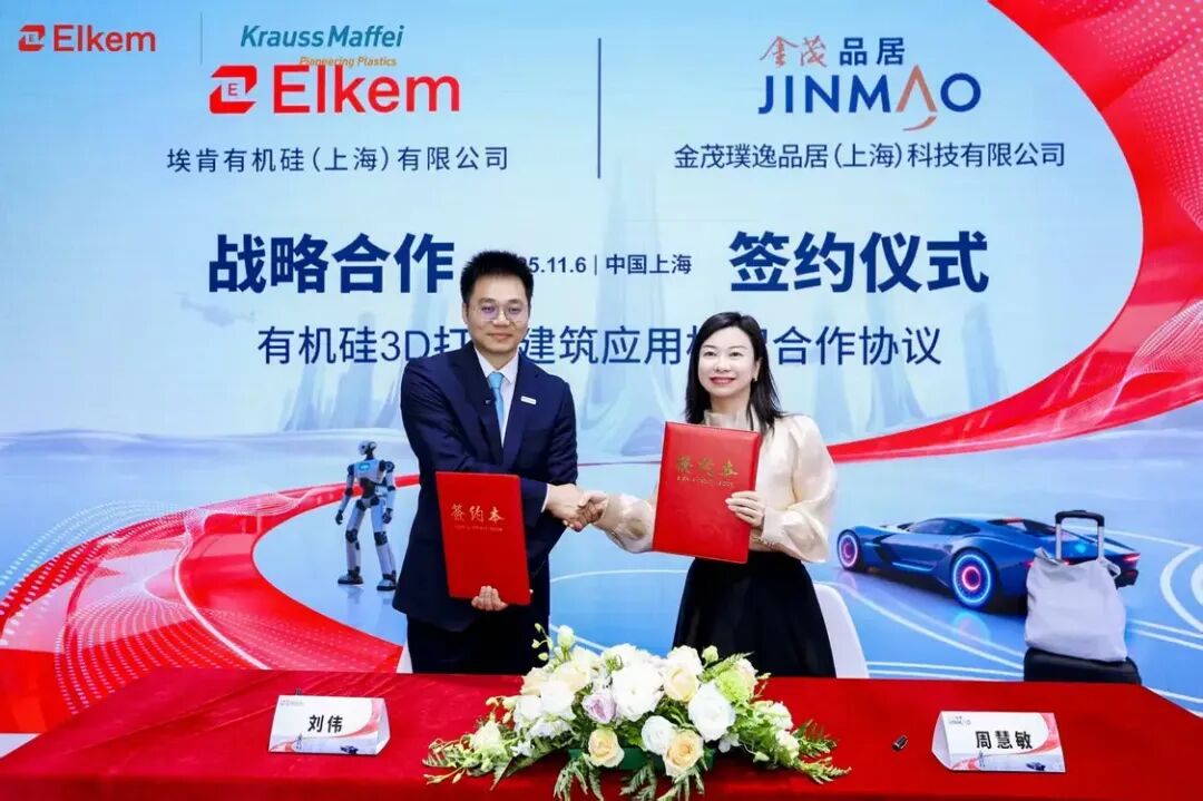 聚焦软装设计与装配式建筑领域的金茂璞逸品居(上海)科技有限公司,与专注于有机硅橡胶、树脂等先进材料领域的埃肯有机硅(上海)有限公司,正式签署战略合作协议,双方将围绕有机硅3D打印技术在建筑装饰、室内软装及艺术陈设等领域的创新应用展开深度合作,携手打造行业技术新标杆,推动建筑与材料科技的融合发展。