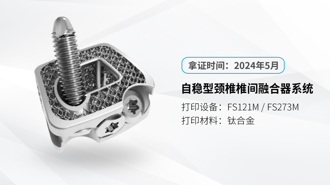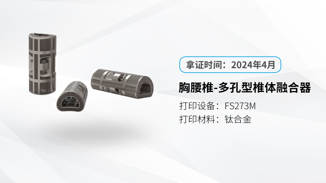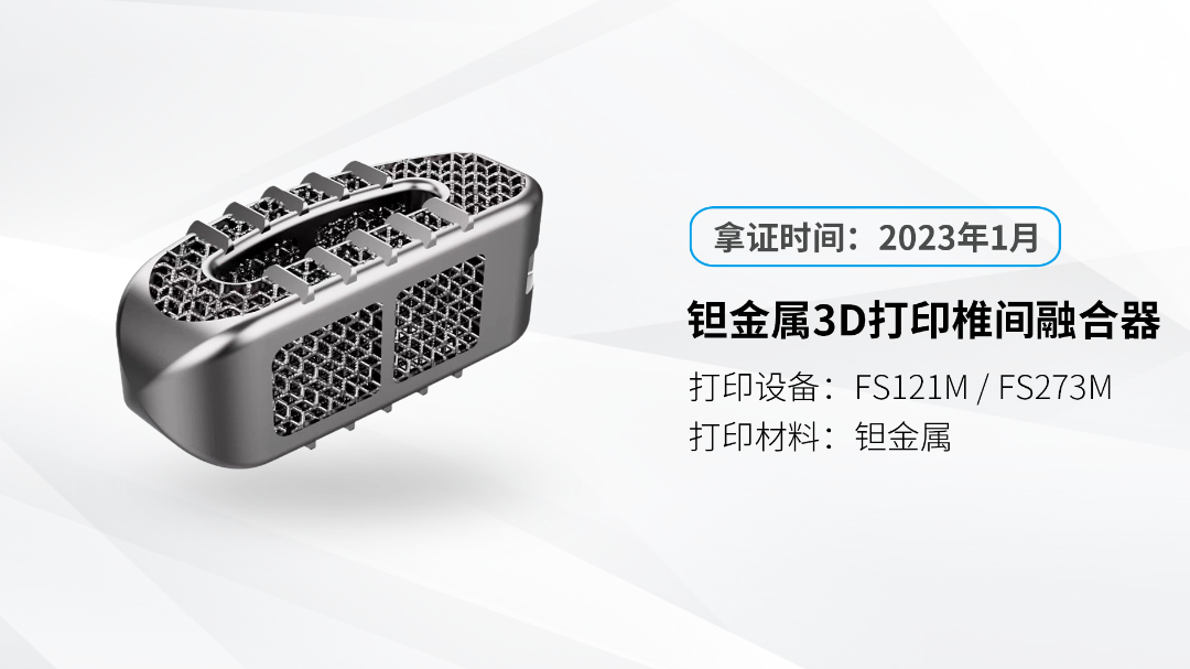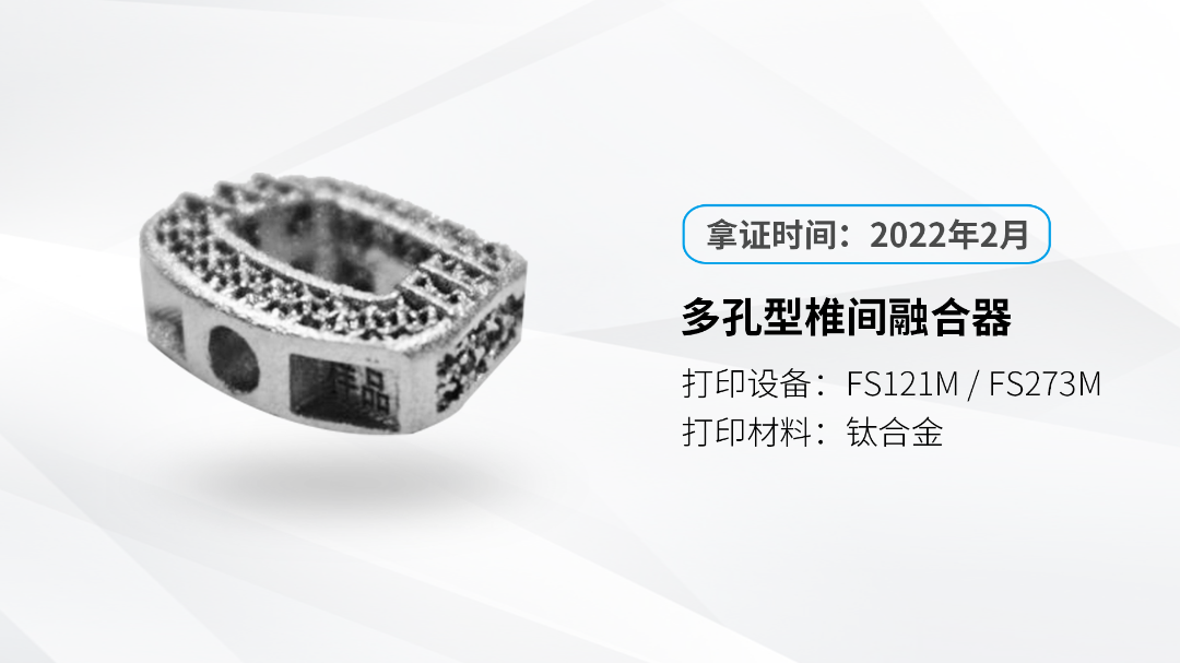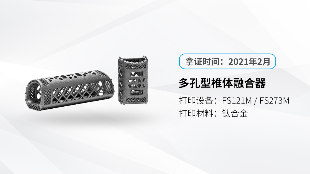 依托华曙高科金属增材制造解决方案支持,华翔医疗于2021年2月自主研发的钛合金3D打印多孔型椎体融合器成功获得NMPA三类医疗器械注册证。