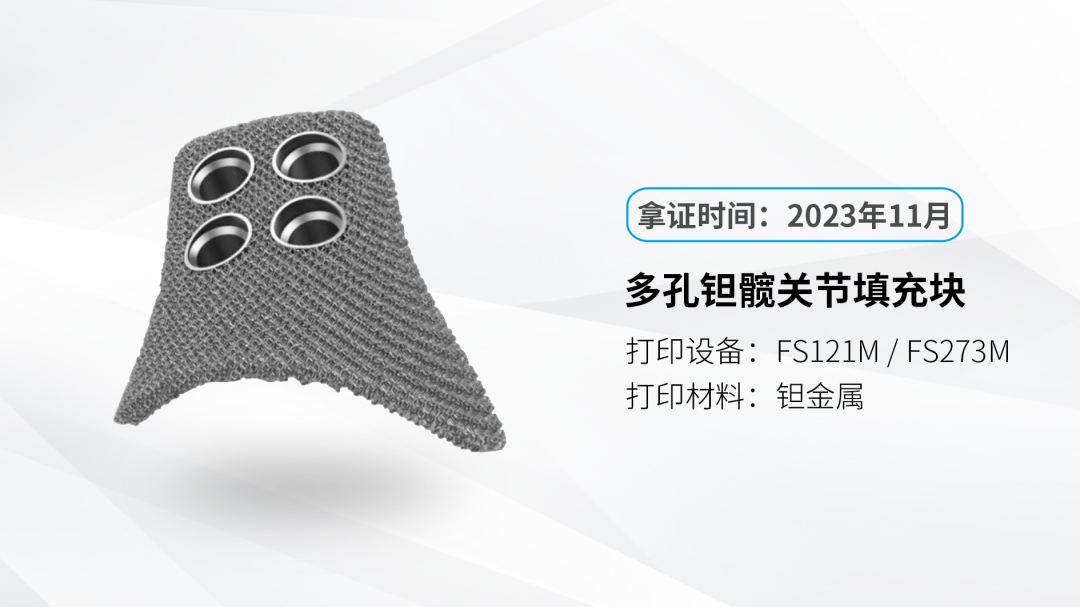 2023年11月获批的多孔钽髋关节填充块,是华翔医疗在钽金属增材制造领域的延伸,进一步拓展了3D打印钽金属器械的临床应用场景。这款产品同样基于华曙高科金属3D打印技术研发。