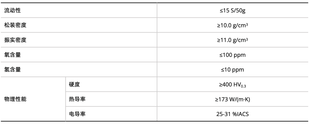 倍丰智能依托自主研发的Gas Heat Atomization(下简称GHA)设备,通过创新性的雾化工艺在高纯制备环境下,有效降低杂质含量,钨粉纯度高,杂质如氧、碳、氮及其他杂质较少,保证了产品的性能稳定。且瞬时高温制备使其几乎无空心粉、卫星粉,粉末具有较高的松装密度、振实密度及堆积密度,在打印成型过程更有利于产品的致密度,提升制件综合性能。