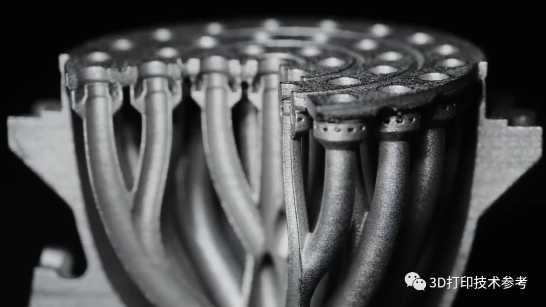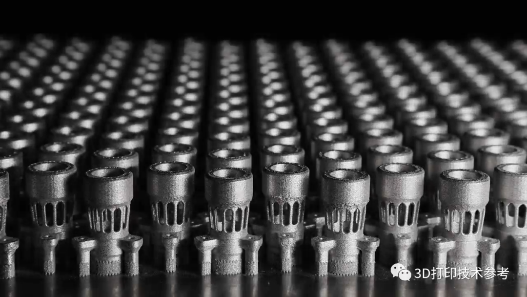 通过仔细查看该公司释放出的打印流程,3D打印技术参考注意到该公司所开发的设备在舱室结构和铺粉方式上与常规的SLM过程完全不同。首先,在舱室结构上,其具有前后两部分成形空间,均用来打印零件,可视部分并没有布置供粉缸;铺粉过程在打印区间的左侧完成,与传统的水平方向固定缸位不同,其所设计的成型缸可水平移动,在打印完一层之后,成型缸移动到左侧的不可视空间内完成铺粉,再移动回成形区间;在一个缸铺粉的过程中,激光并不停歇,而是打印另一个区间的零件,因此实现了不间断制造。对于铺粉方式,可以猜测其采用的是上供粉。而且,Freeform配置的激光器数量多达数十台,属于多种形式叠加来提升打印效率。