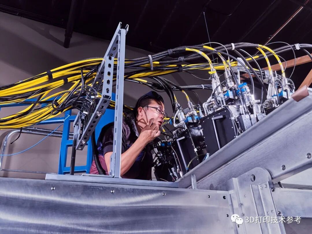 3D打印技术参考查询到,它是一家由前SpaceX工程师创立的由AI驱动金属3D打印的高科技企业,主张采用先进的传感、实时控制和数据驱动的学习,实现金属3D打印自动化工厂的构建。该公司于今年3月释放了一段未来打印的场景,极具震撼力。本文接下来要着重介绍这家公司如何通过对设备结构和打印流程进行改造,显著提升打印效率。