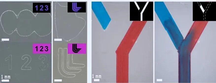 在实验室里,研究团队在一个微流控元件上验证了此方法,该元件有两个起初分离的通道。借助紫外线诱导降解,这两个通道随后就连通了。