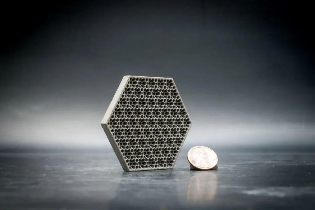 这个案例所呈现的是一块55毫米的Ti64燃料电池板,它具有薄壁结构的特点,展现出冷金属融合3D打印的细节制造能力。这个解决方案,比较适合应用在高温过滤器、航空航天面板、隔热罩、催化剂载体、燃烧板等很多领域,同时也证明了冷金属熔融的多功能性。