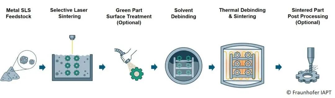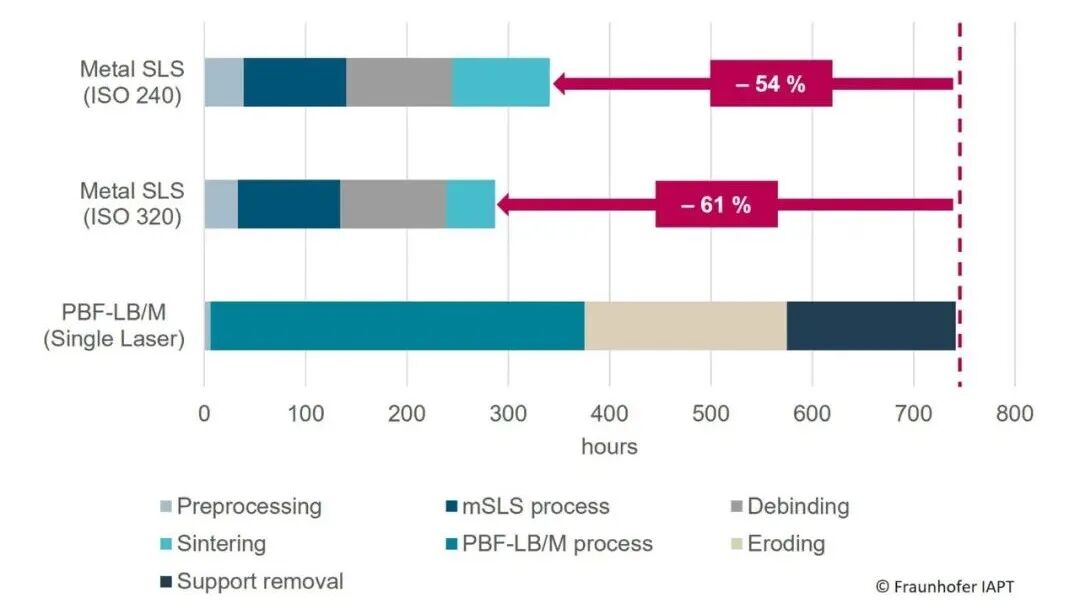 最近,笔者关注到弗劳恩霍夫IAPT研究所(铸造、复合材料及加工技术研究所)的一项独立研究,评估了“金属SLS工艺链”的工业潜力。研究结果显示,使用成熟的SLS平台可以实现经济高效且可扩展的生产金属部件,是激光粉末床熔融(L-PBF)技术的重要替代工艺,适用于复杂、难以打印的金属。