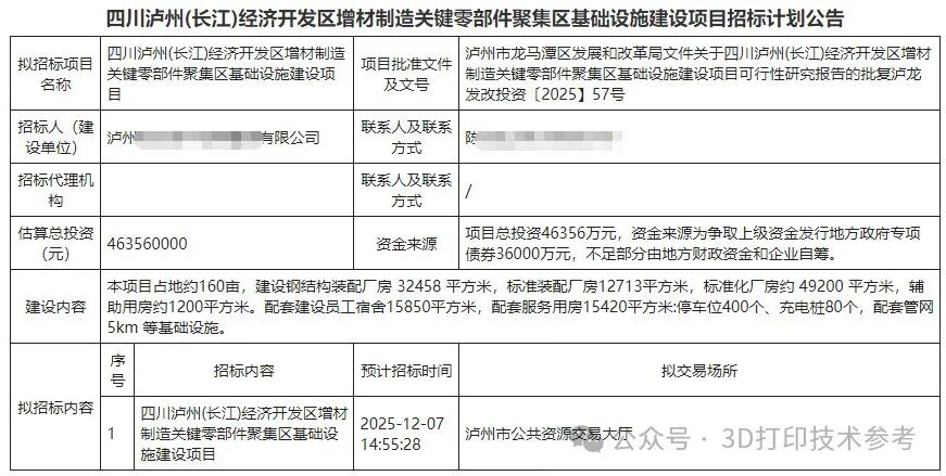 12月,鑫精合激光科技集团股份有限公司西南总部增材智能制造项目股权合作签约。 11月,“梁溪星座”项目公开招标,预算金额达4.5亿元。项目建设由12颗智算卫星组成的星座,要求所有卫星实现3D打印增材制造。 11月,融速科技增材制造全球服务基地总部项目签约,项目计划投资超5亿元,打造增材制造全球服务基地总部。 11月,四川泸州(长江)经济开发区发布将对“增材制造关键零部件聚集区基础设施建设项目”公开招标的消息,项目总投资额超4.6亿元。 11月,安徽中体新材与上海青浦区华新镇凤栖科创港已正式签约,共同建设“上海3D打印金属粉末研发与国际业务中心”。 11月,总投资2亿元的浙江创立德AI智能3D打印机及新材料项目在海盐武原街道开工。 11月,动力装备精密零部件制造项目签约落户彭州经开区航空动力园。该项目将形成“3D打印-精密制造-高端深加工-全流程检验”完整产业链。 10月,常德经开区与中航迈特、湘能智造壹号股权投资基金签约金属增材制造粉末材料产业化项目,主要用于航空航天铝钛轻质合金粉末产能建设。 10月,青岛中冠智能科技有限公司投资建设的中冠领科工业3D打印中心项目近日正式开工建设,项目总投资1.68亿元。 10月,瑞鹄汽车模具股份有限公司公告称,拟投资建设“大型精密覆盖件模具关键材料智能增材制造项目(一期)”,项目总投资2.666亿元。 10月,苏北智造多技术3D打印设备智造项目奠基仪式在江苏苏宿工业园区举办,总投资额预计达3亿元。 10月,江苏省淮安区“3D打印墨水+人工皮肤生产项目”于10月17日举行开工,总投资约10.18亿元。 10月,武汉真彩智造(咸宁)高科医疗产业园近日启动试投产,项目首期投资1.2亿元。 10月,上海交通大学郑州数智医学3D打印创新园区城市更新项目策划方案顺利通过区级评审,即将开工建设,计划总投资5.1亿元。 10月,安徽省禹会区与杭州喜马拉雅信息科技有限公司签订招商引资协议,总投资11亿元。 10月,苏州西帝摩三维打印科技有限公司与乌鲁木齐甘泉堡经开区近日签订合作协议,将在五年内总投资20亿元在该地建设3D打印生产总部基地。 9月,繁昌区与共形生长科技有限公司完成新3D打印项目签约,计划总投资1亿元。 9月,三迭纪在南京建设“全球最大”的商业化3D打印制药生产基地,该基地投入运营后,预计年产量可达3亿片。 9月,杭州江南科学城报道,该地总投资20亿元的3D打印研发生产制造基地(高精度传感器项目)正加速推进。 7月,统联精密布局新型智能终端零组件智能制造中心项目,引入3D打印等技术,投资4.65亿。 7月,有研粉材审议通过投资建设增材制造金属粉体材料产业基地项目,投资总金额2亿元人民币。 7月,北京三帝科技股份有限公司在天津投资3亿元建设3D打印装备生产基地及北方最大的铸造基地以及产品展厅项目。 6月,铂力特高端装备项目正式签约落户江苏太仓高新区,总投资1亿元。 4月,拓宝增材首个大规模金属3D打印服务中心落户江苏淮安,项目规划2年建设成拥有百台设备的拓宝金属3D打印服务中心。 3月,苏州博理签约超高速3D打印智能云工厂项目,落户泸州龙马潭区,该项目总投资5亿元。 2025年2月,江苏丹阳市重点项目开工活动举行。其中深圳市金石三维打印科技有限公司计划总投资30.8亿元,建设汽车零部件3D打印全球生产基地项目。 2025年1月,《江苏省2025年重大项目名单》公布,年度计划投资3.6亿元的中航迈特增材装备零部件项目赫然在列。 |