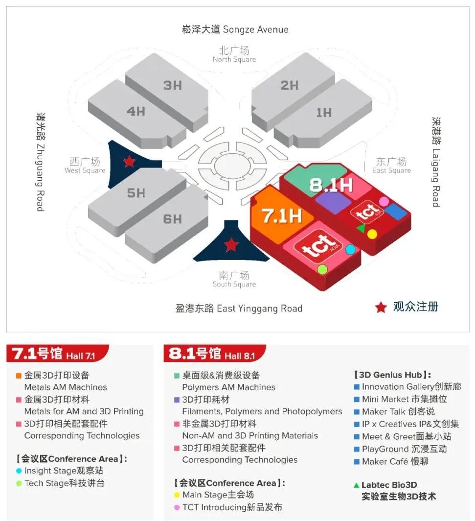 为了让每一位到场观众都能“看得准、逛得快、收获多”,TCT亚洲展为大家精心规划了观展路线。2026年,将延续清晰的展区分布,7.1号馆聚焦金属增材制造的完整链条,包括金属3D打印设备、金属材料以及后处理与配套方案,方便来自航空航天、汽车、模具、能源装备等领域的观众快速对接工业级解决方案。8.1号馆则覆盖3D打印全产业链,包括非金属设备、多材料体系及丰富的落地应用,从材料与设备到完整的产业链生态,为观众提供一站式体验。