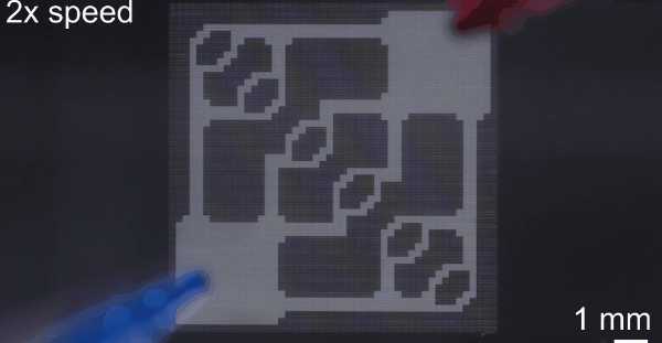 空间光调制器的因素能够通过调整像素的灰度来控制光的强度与开关。笔者发现,由12万个微透镜组成的超表面透镜阵列包含了1亿个像素,这是实现双光子光刻高精度打印的重要影响因素。有没有发现这些描述很熟悉?在Seurat公司开发的金属区域打印中,也有类似的原理。