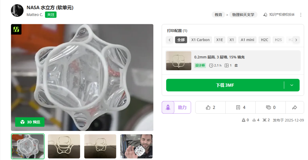 最后,3D打印技术参考还发现,关于该结构的可3D打印模型已经在MakerWorld上线。