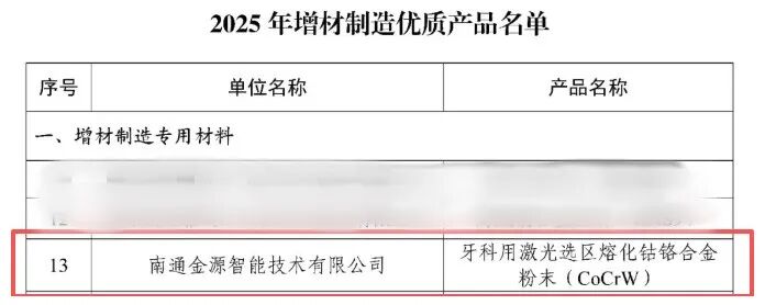 3D打印技术参考在中国增材制造产业联盟发布的《2025年中国增材制造优质产品名单》中发现,由金源智能开发的“牙科用激光选区熔化钴铬合金粉”赫然在列。