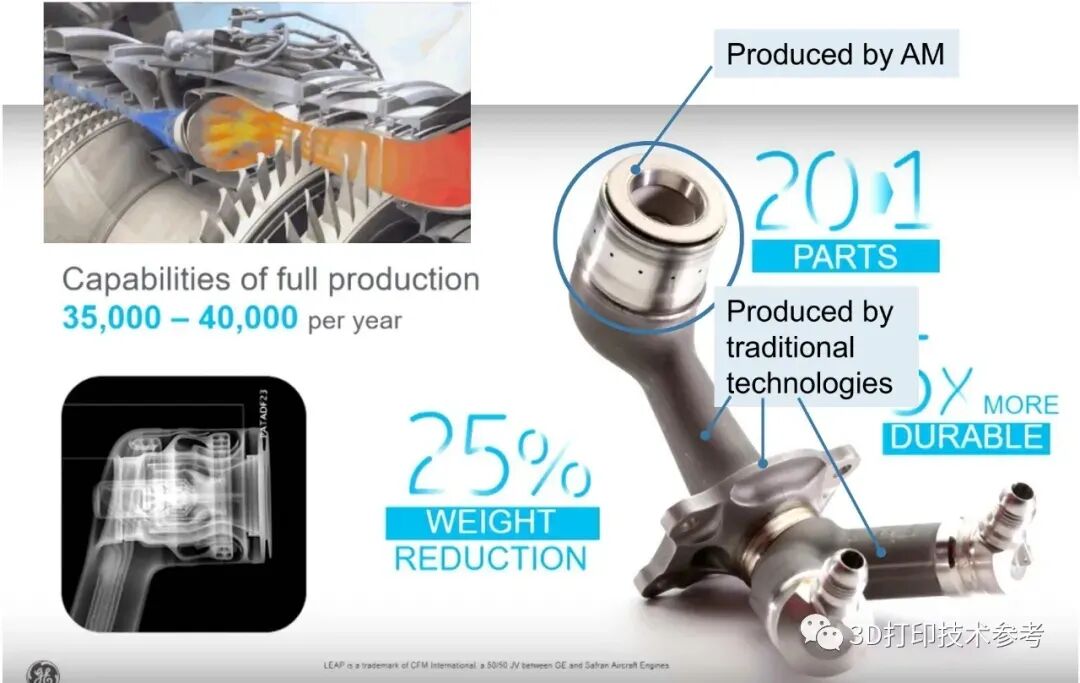 全球范围内第一个金属3D打印规模化应用示范项目,就是燃烧室燃料喷嘴。2012年,GE推出了采用3D打印技术开发的航空发动机燃油喷嘴,并在随后几年实现了规模化制造,让行业认识到金属3D打印技术可以这样“玩”。