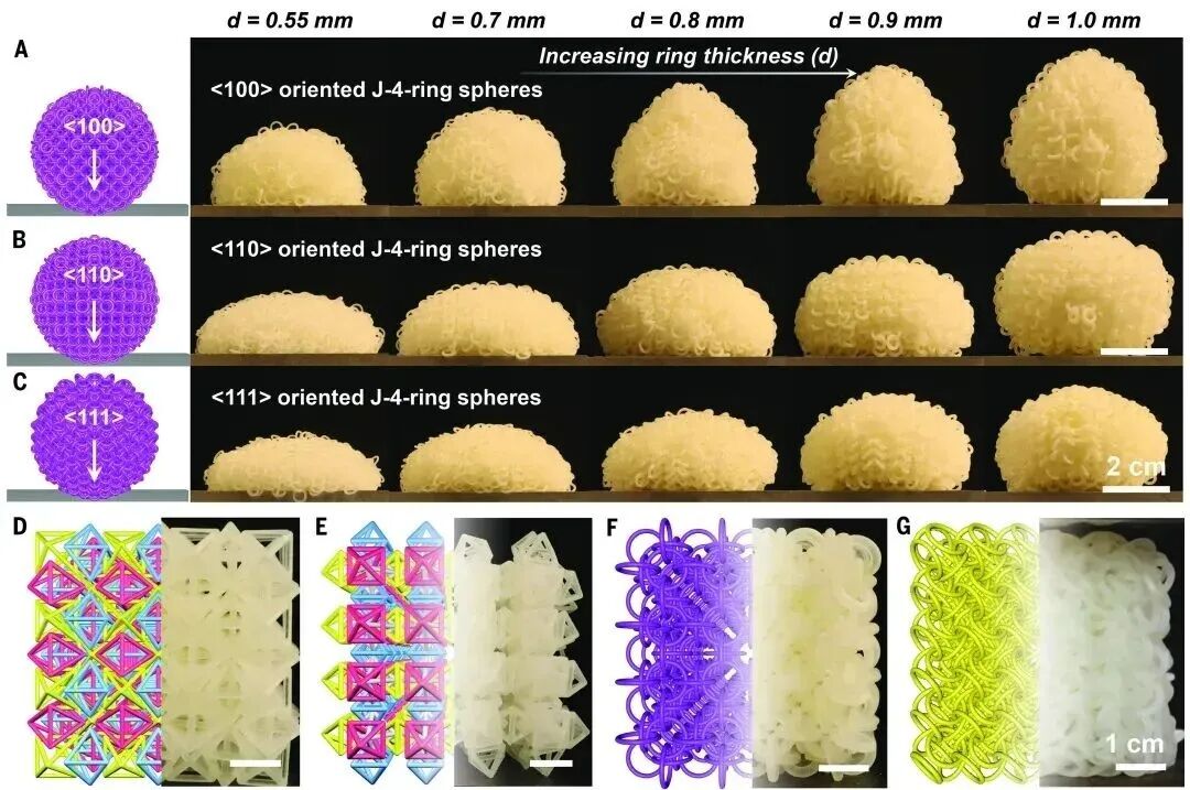 论文指出,这项研究为创造具有前所未有的力学性能和响应控制的架构材料奠定了基础。本文第一作者为加州理工大学的博士后、中国学者周文杰,文章题目为“3D polycatenated architected materials”。