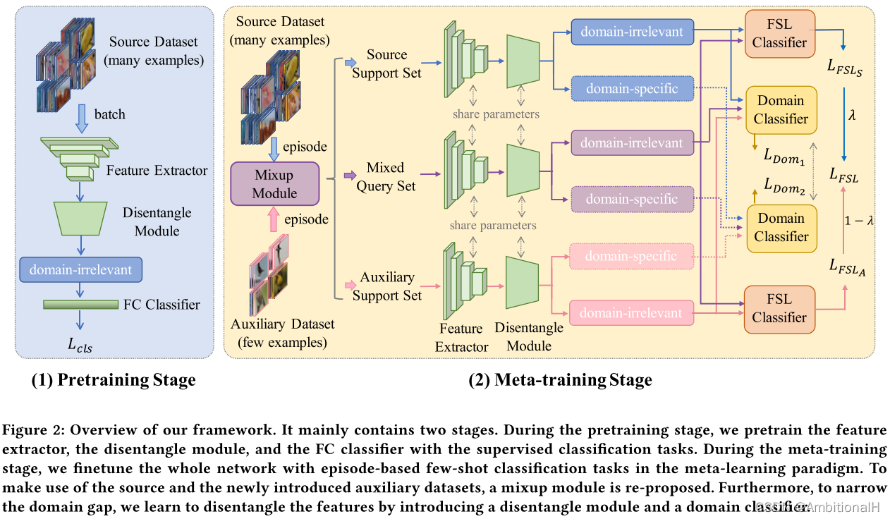 采用元学习的策略,在一个数据集内。训练时每个 episode 从 Sbase 中采样一个 Source,从 Daux 采样一个 Auxiliary。Source episode 又分为 Source Support Set 和 source query set,Auxiliary episode 又分为 Auxiliary Support Set 和 auxiliary query set(论文这里写的很不清楚...看代码)。