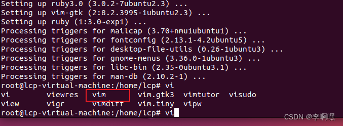 2.切换到root下,输入sudo apt-get install vim-gtk