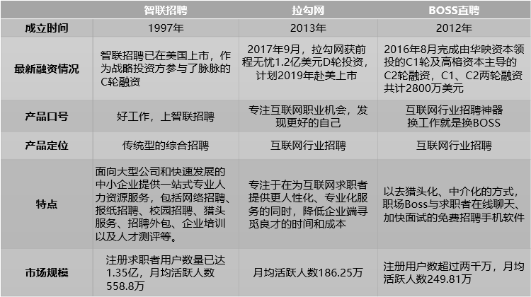 拉勾专注互联网人群,在知乎和各论坛上有口皆碑,用户体验和个性化推荐上做得确实可圈可点。但是在目前市场上,较直接对手Boss直聘有稍微落后。