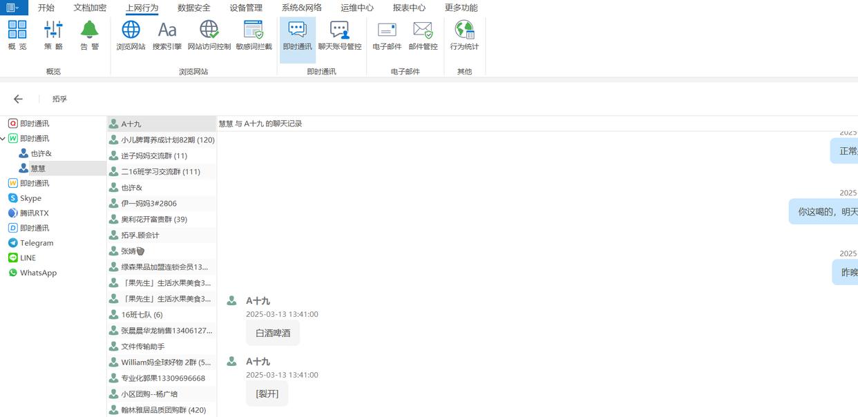 聊天内容监控:为了防止敏感信息泄露,安固软件支持对多种即时通讯工具的聊天内容进行监控,包括QQ、微信等常用平台