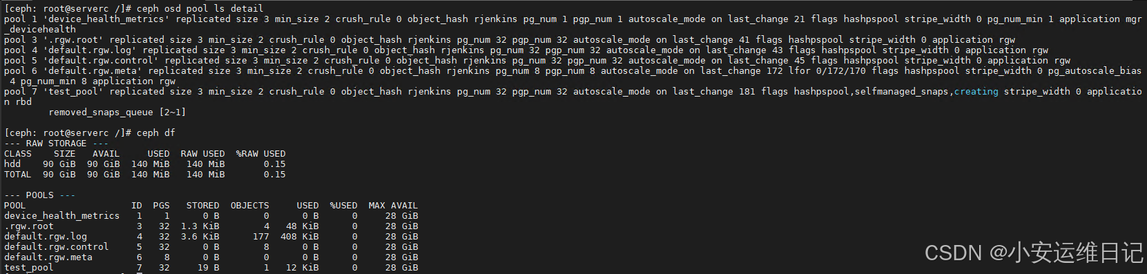 在第二个存储服务器serverf上面也创建一个rbd存储池