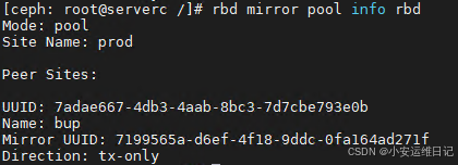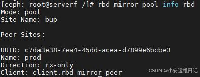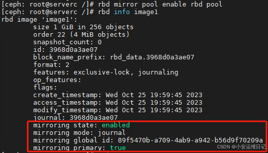 [ceph: root@serverc /]# rbd mirror pool enable rbd pool //启用镜像池的 Mirroring