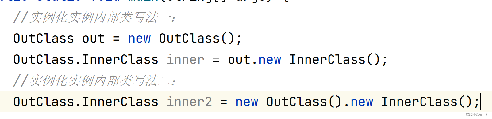 外部类.实例内部类 变量名 = 外部类引用.new 内部类();