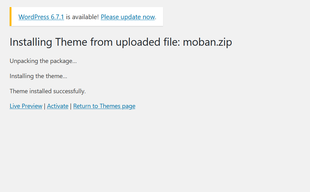 这里因为不是授权版本,无法上传,如果有授权版本的话就可以成功上传,上传后系统会自动解压,直