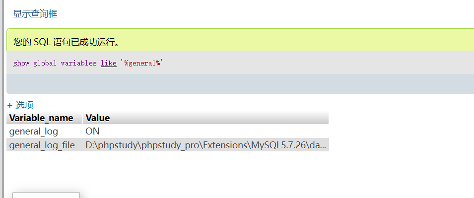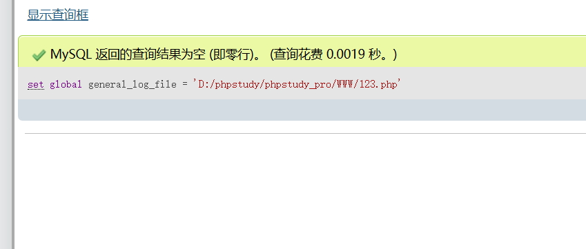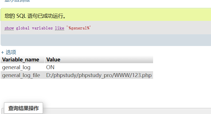 set global general_log_file = 'D:/phpstudy/phpstudy_pro/WWW/123.php'; //修改日志的保存位置。