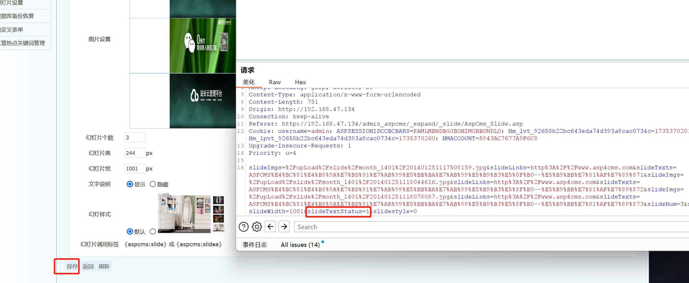 点击保存拿BP抓包slideTextStatus 字段的值为