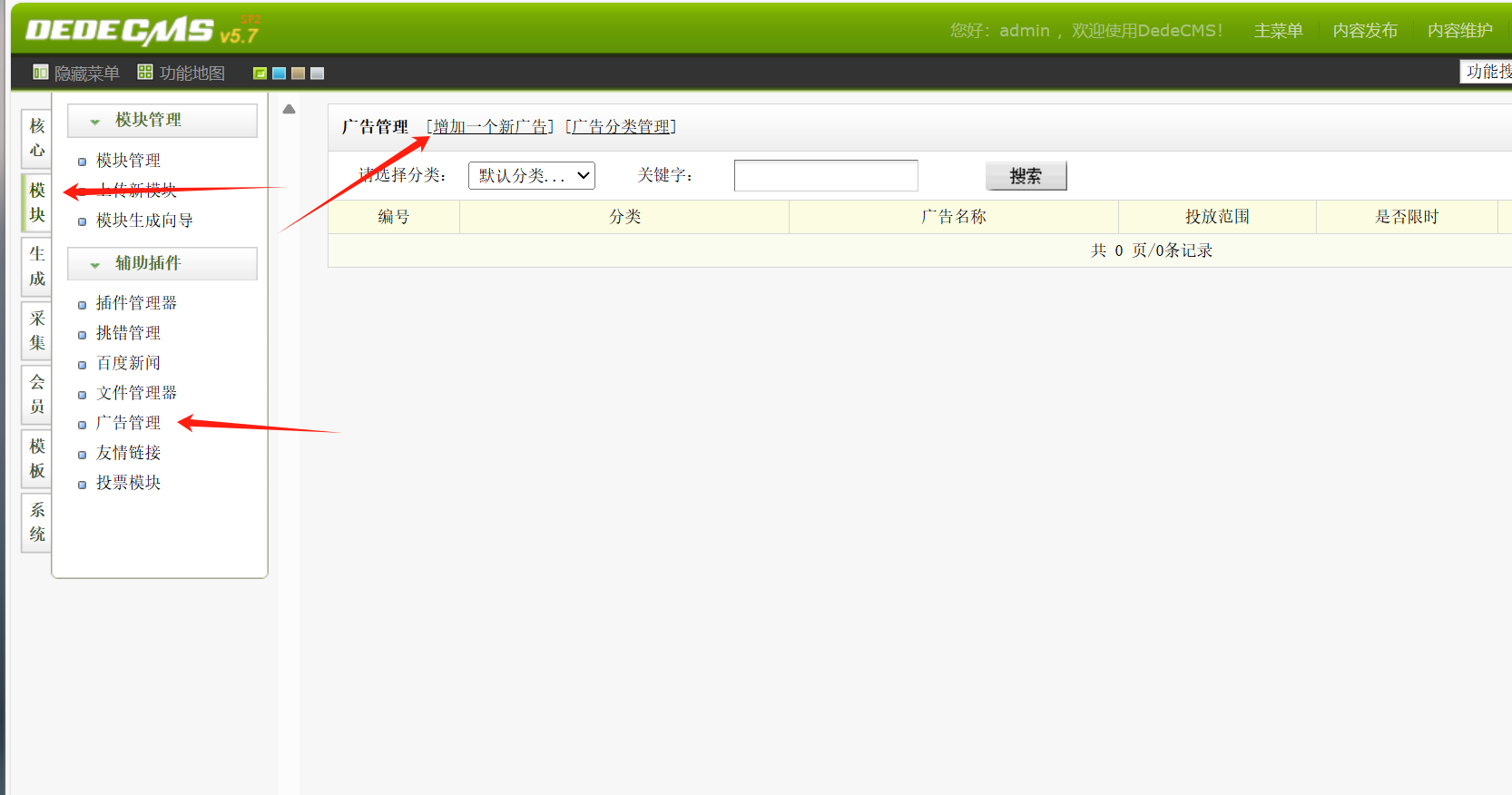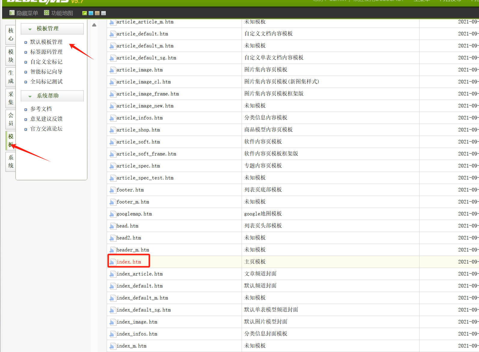 在模板-->模板管理-->默认模板管理找到我们的首页