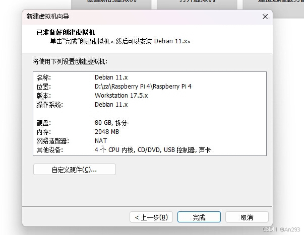 这部分是虚拟机的运行内存,真实树莓派的运行内存分别是2GB、4GB、8GB,按照需求选择,一般2GB和4GB就够用了