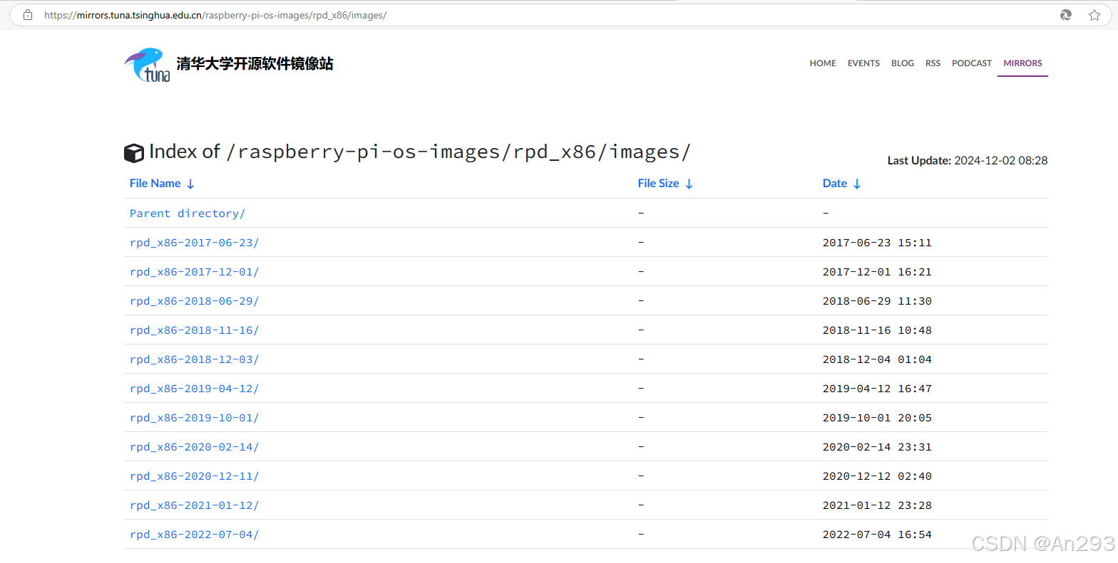 树莓派系统镜像下载在清华大学开源镜像站:Index of /raspberry-pi-os-images/rpd_x86/images/ | 清华大学开源软件镜像站 | Tsinghua Open Source Mirror