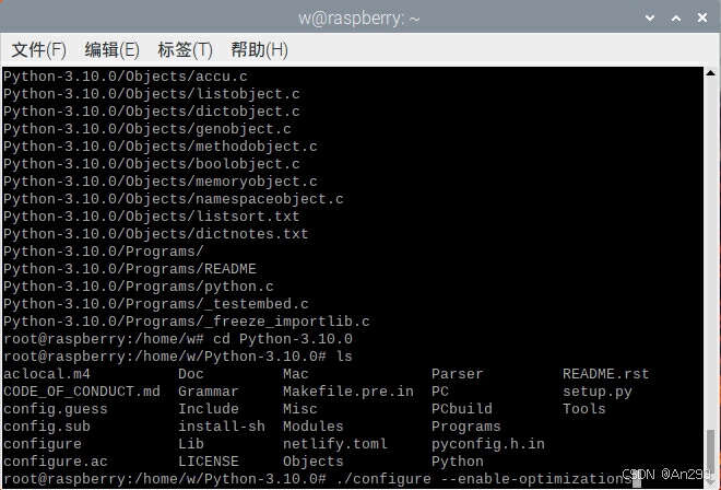 检查里面是否有configure包,如果存在可进行下一步,不存在的话需要将刚下好的压缩包以及解压的python文件夹进行删除,使用命令:rm -r Python-3.10.0.tgz 和rm -r Python-3.10.0,删除之后再重新下载