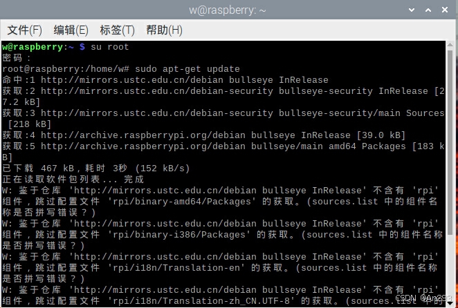 进行更新下载源: sudo apt-get update (这里只要不报错,出现一些警告也没所谓)