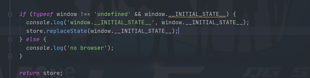 以上就是SSR一种保存状态的方式的流程,不过我们还需要初始化store的时候执行以下这段代码,进行数据同步: