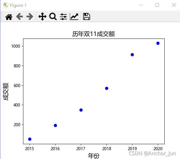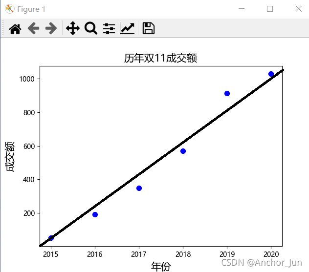 以一个题为例:给出历年的双十一成交额,years = [2015, 2016, 2017, 2018, 2019,2020]