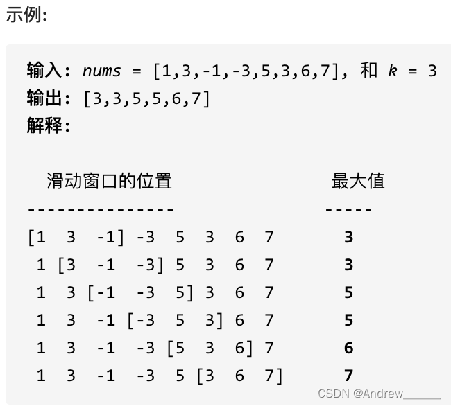 我们需要一个队列,这个队列呢,放进去窗口里的元素,然后随着窗口的移动,队列也一进一出,每次移动之后,队列告诉我们里面的最大值是什么。