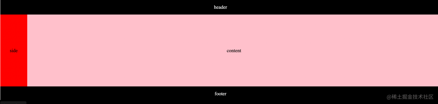 MainContent为剩余内容的补齐。举例:如果Side为 100px, 那么main为 100vw - 100px