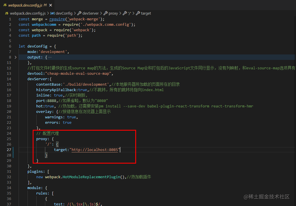 这个时候就需要对webpack的devServer这个属性进行代理配置,